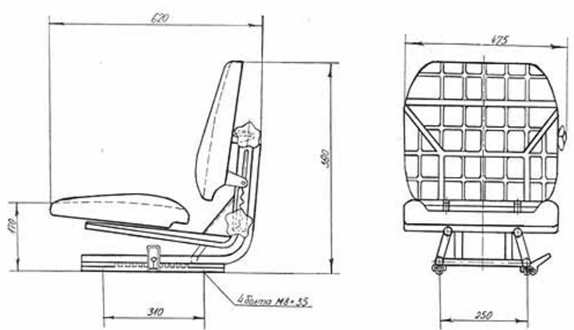 - высота от основания до верхней передней кромки сиденья, мм 170