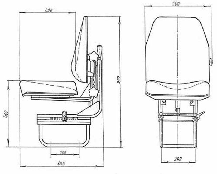 - Сиденье на основании с пружинной подвеской и гидравлическим амортизатором.