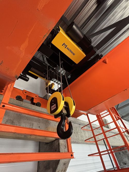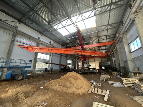 В июле 2025 года сотрудники ООО "Технекс" проивели поставку и монтаж двух опорных двухбалочных мастовых кранов на объекте заказчика. Мостовые краны NLH16/5-22,5m проиведены в Китае и доставлены заказчику на объект. На кранах установлены грузовые телеги европейского типа с двумя подъемами (16 тонн - основной подъем и 5 тонн - вспомогательный). Также на кранах установлены частотные преобразователи на подъем (основной и вспомогательный), передвижение грузовой тележки и крана, оптические датчики против столкновения кранов, ограничители грузоподъемности (основного и вспомогательного), концевые выключатели. Управление кранов осуществляется посредствам радиоуправления (дополнительно установлен резервный подвесной пульт). Подвод питания к кранам произведен по средствам троллейного токоподвода. Также установлены троллейные указатели.
