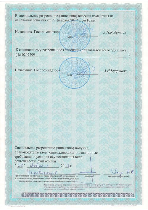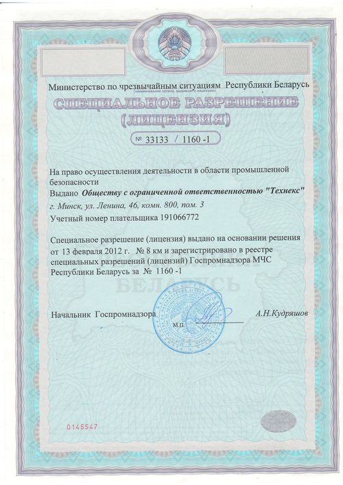 Специальное разрешение (лицензия) МЧС РБ