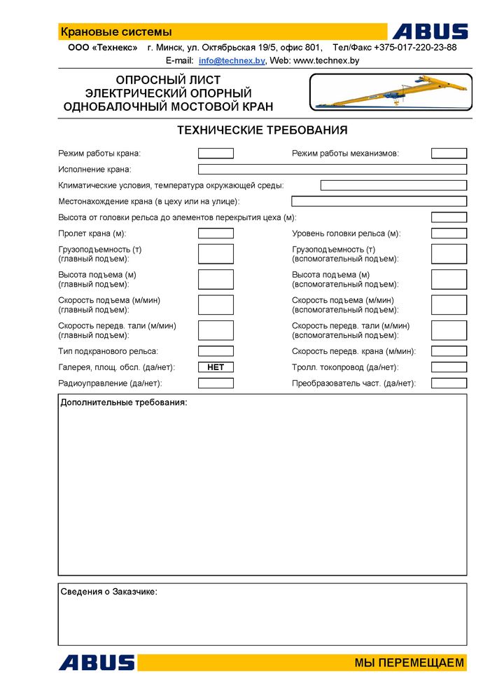 1. Краны мостовые двухбалочные опорные из комплектующих ABUS