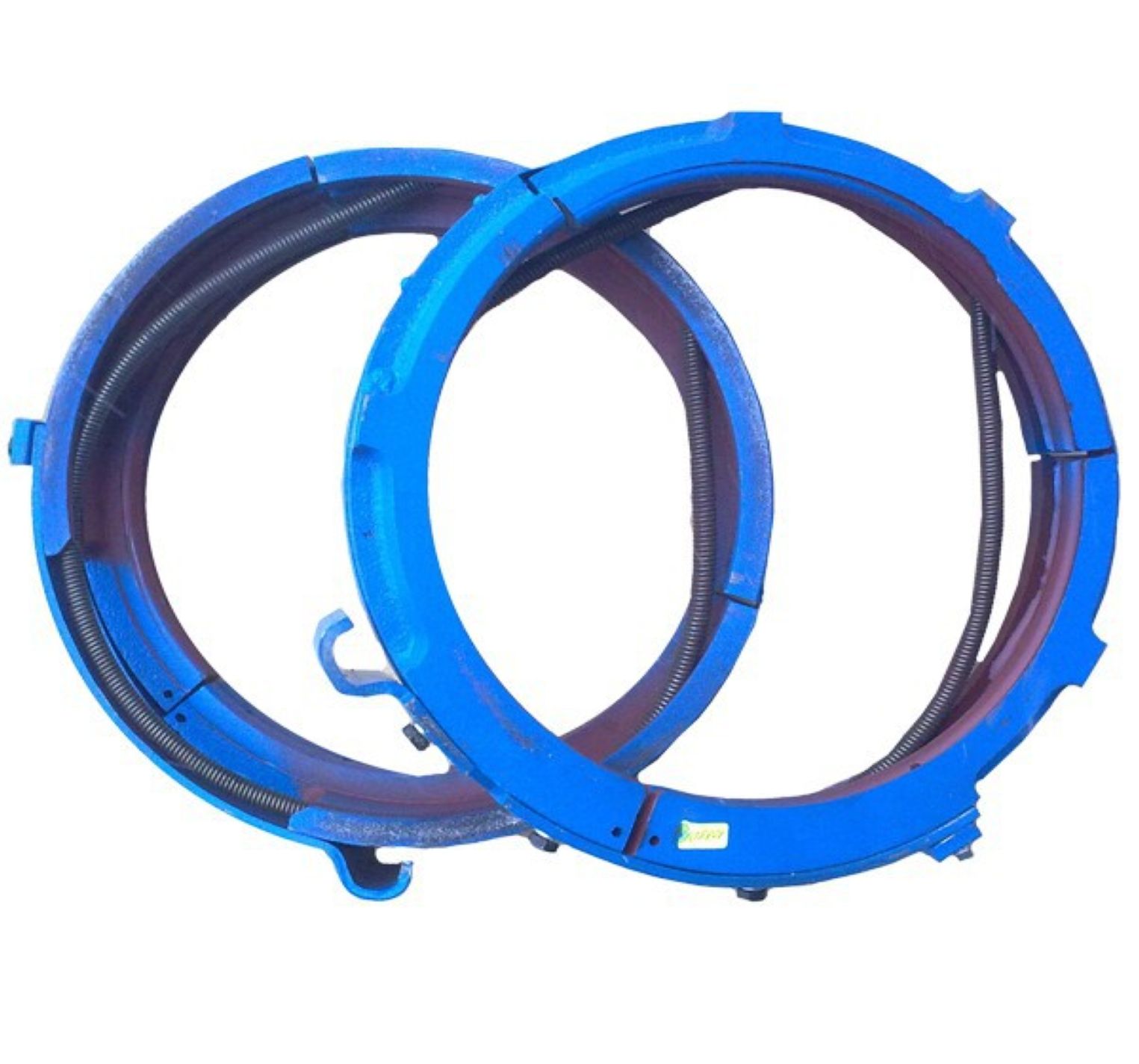 - канатоукладчик в сборе, служит для направления и укладки каната в каналы барабана. Состоит из чугунной направляющей гайки, которая передвигается по каналам барабана, и прижимного кольца из листовой стали, затянутого на канате с помощью цилиндрических пружин.
